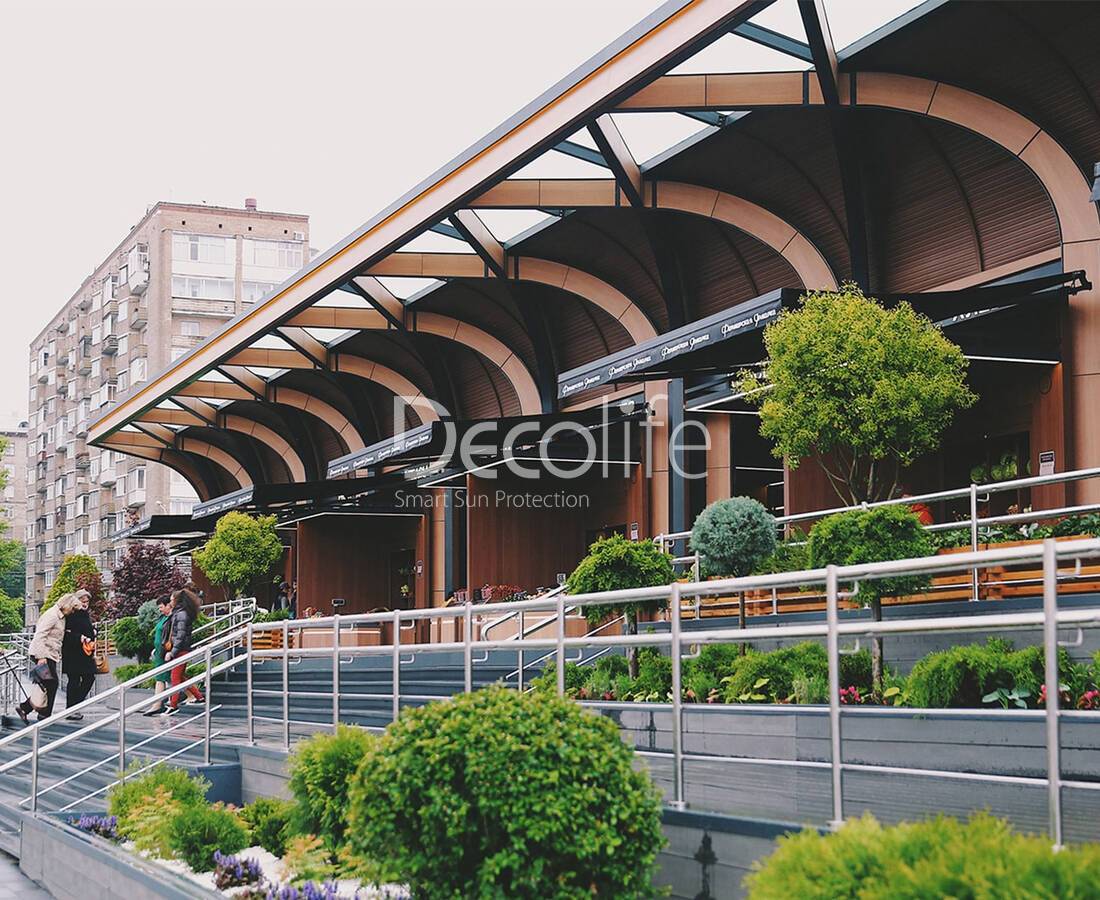 Витринные маркизы Decolife (G400, G450) представляют собой изящное и функциональное решение для защиты витрин магазинов, торговых площадей, а также оконных проемов городских жилых и офисных зданий от интенсивного солнечного излучения.